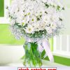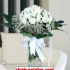 Vazoda beyaz aşk güller ve bu beyaz güller arasına konuk olmuş kırmızı bir kalp. Cipso ve yeşilliklerle sevgi yumağı bir zerafet.